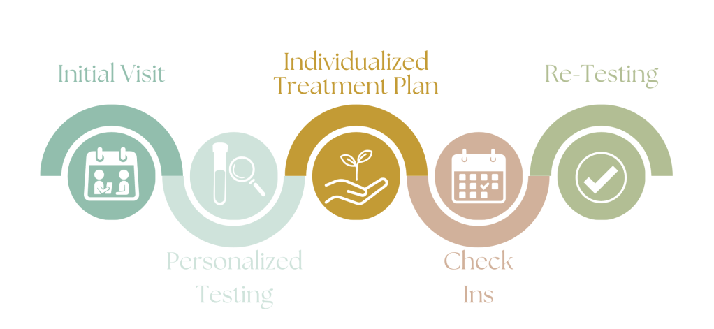 I believe in the “test before you treat” model which allows us to have a deeper look at the factors affecting your health and guide us towards more specific treatment plans tailored for you, without the guess work! During your initial visit we will discuss the need for possible testing including bloodwork, symptom charting, or advanced tests that will guide our treatment plan going forward.